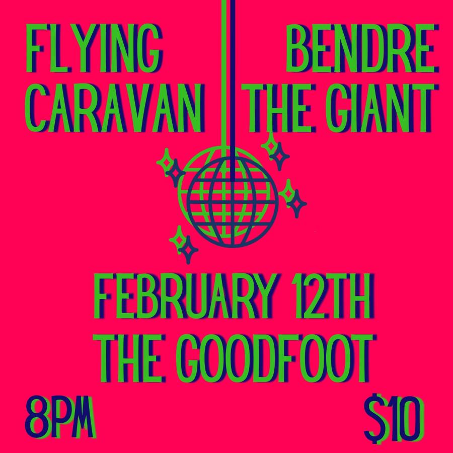 Join us for a groovy, soulful evening with Flying Caravan and BendreTheGiant! All aboard!<br>Flying Caravan<br>www.flyingcaravan.com<br>Portland's Flying Caravan crafts whimsical soundscapes that drift through cloud castles and rivers of rainbows. Led by the ethereal vocals of Azzy Isabell, the band fuses psychedelic melodies, deep grooves, and celestial rhythms. Their songs are crafted from a rich blend of vibrato vocals fluttering alongside electric guitars, keys, bass, percussion, and drum kit swirling together within a dance of interplay. Flying Caravan’s second studio album, Connected We Are, was recently released at the end of 2025. Let's fly to new heights!<br>BendreTheGiant<br>From Portland, Oregon, BendreTheGiant is the vessel for songs by vocalist/producer Ben Estrada. Over the past year the project has released 2 EPs and a series of singles, earning features in OPB, Willamette Week, Eugene Weekly, and V13 Magazine. Estrada and his collaborators move fluidly across genres, with songs that feature everything from Deftones-adjacent thunderous guitar tones to a big band horn section or a Cumbia-inspired percussion break. BendreTheGiant is currently in the studio working on their debut album, which is being recorded using support from MusicOregon’s Echo Fund artist grant.