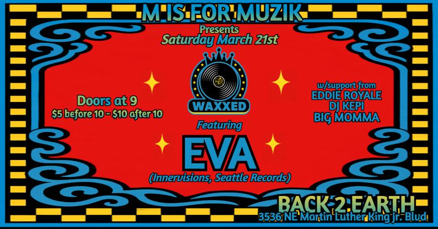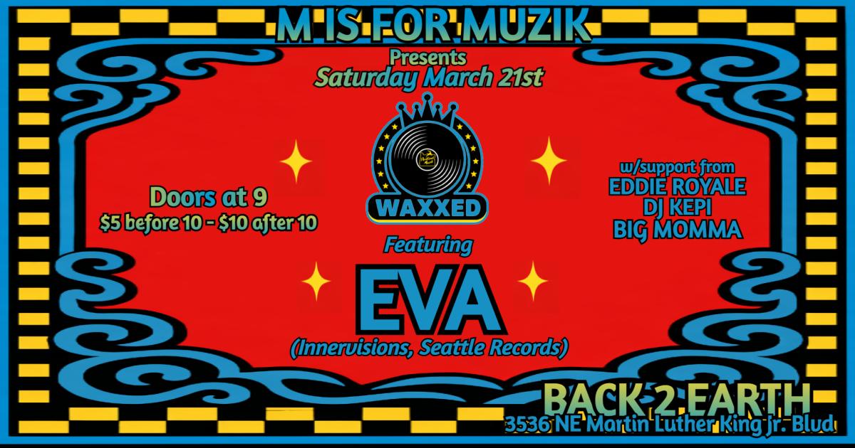 M Is For MUZIK brings the vibe with WAXXED, plus special guest EVA coming down from Seattle to drop fresh beats all night long.