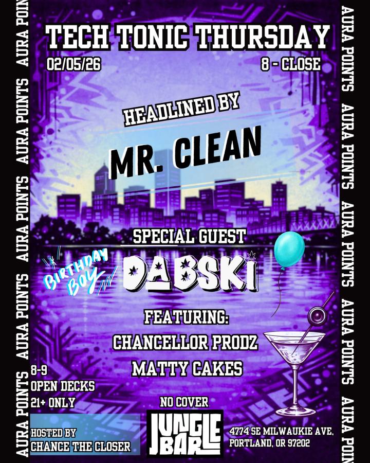 🧼 MR. CLEAN - a true master on the decks and voted best DJ in his own house by 4 out of 4 cats! 🐈 He is also a highly respected and active, yet humble artist within the Portland underground community.